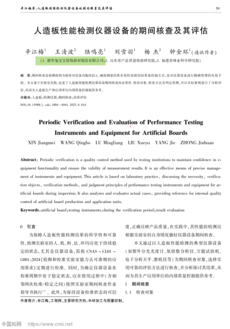 《人造板性能检测仪器设备的期间核查及其评估》(发表于《计量与测试技术》2025年 第6期)▼▼▼