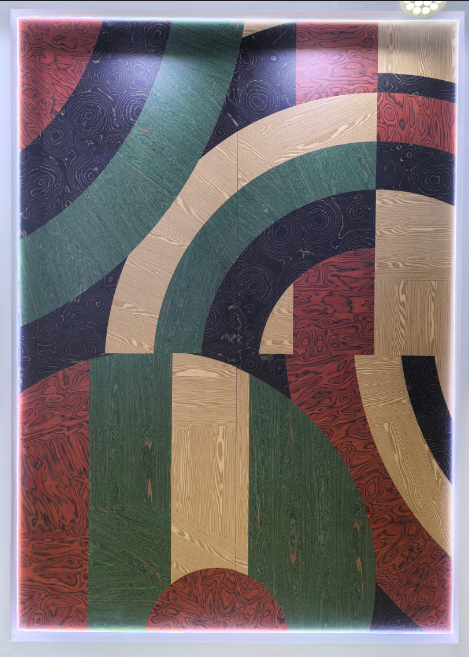 在个性化与文化自信成为消费新趋势的当下,兔宝宝展馆以“传统与现代共生”为亮点。展出的定制化拼花造型打破传统木皮设计局限,通过独特色彩与造型满足个性化审美需求;蕴含中式元素的系列产品更显匠心:醒狮祥瑞、金玉满堂主题木饰画将传统吉祥寓意与科技木细腻纹理融合,科技木皮制作的古筝以现代材质复刻传统音韵,边几、键盘手托等国风小摆件让东方美学渗透日常肌理。从定制化设计到文化符号创新,兔宝宝以“材质+文化”演绎,为家居消费注入精神价值。