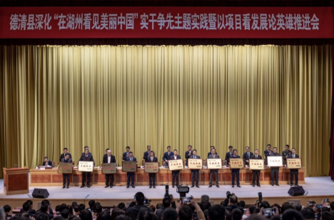2月25日,湖州市“新春第一会”——牢固树立和践行正确政绩观持续深化实干争先主题实践推进会召开,德华集团被授予2025年度湖州市“金象企业”称号,这是公司连续第八年获得该项代表湖州企业最高综合实力的荣誉;当天下午,在德清县深化“在湖州看见美丽中国”实干争先主题实践暨以项目看发展论英雄推进会上,德华集团荣获德清县“卓越企业”称号。德华集团总经理程树伟代表企业上台领奖。