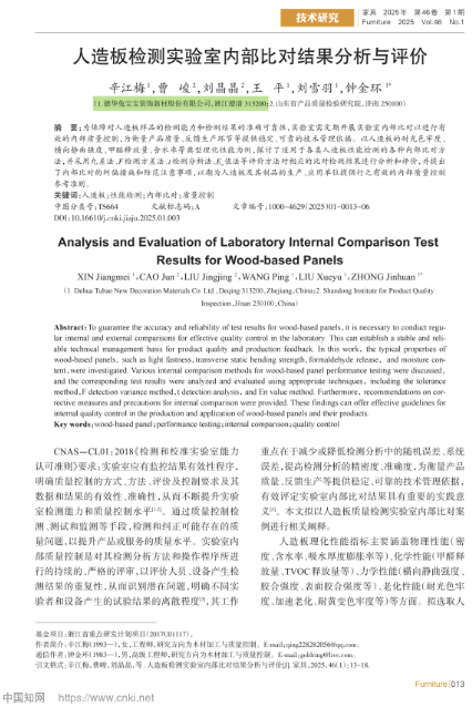 《人造板检测实验室内部比对结果分析与评价》(发表于《家具》2025 第1期)▼▼▼