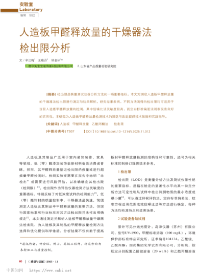 《人造板甲醛释放量的干燥器法检出限分析》(发表于《质量与认证》2025年 第11期)▼▼▼